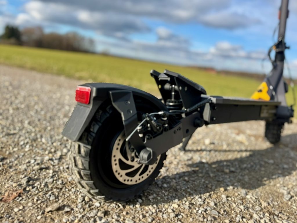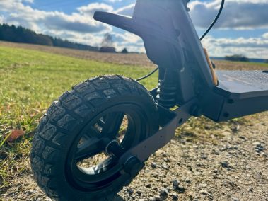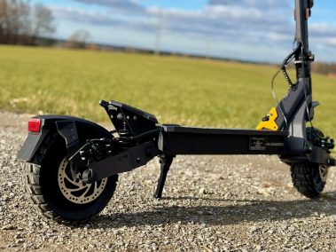 Die Spaltmaße, Schweißnähte und Verschraubungen wirken hochwertig. Auch die Klappmechanik macht einen vertrauenerweckenden Eindruck, was bei schweren Scootern extrem wichtig ist. Nichts klappert, nichts wirkt billig.
