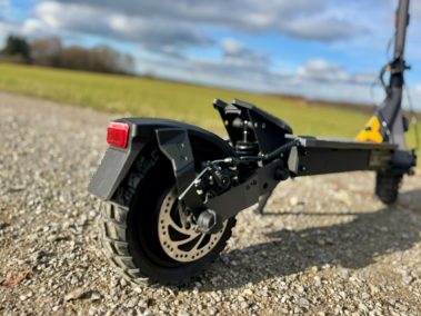 Die Federung kannst du über eine Mutter an der Feder anpassen. Willst du es straffer oder komfortabler, lässt sich das mit einem C-förmigen Schlüssel einstellen. So kannst du den Scooter ein bisschen auf dein Gewicht und deinen Fahrstil trimmen.