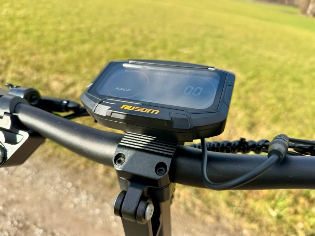 Die Bedienung des AUSOM L1 ist modern gelöst. Das große 4,5″ LCD-Display zeigt dir Geschwindigkeit, Fahrmodus, Akkustand und weitere Infos klar lesbar an. Die Tasten am Lenker fühlen sich wertig an, der Daumengas-Hebel ist gut dosierbar.
