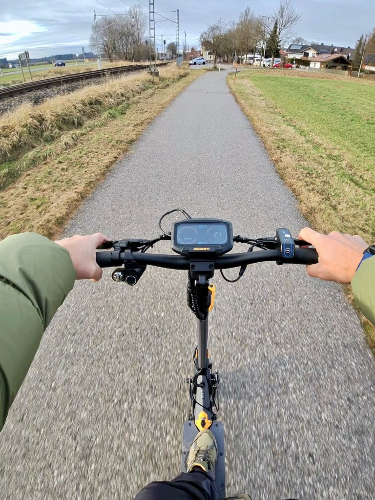 Gerade im Race-Modus fühlt sich der Roller sehr agil an, ohne nervös zu werden. Leichte Anstiege steckt er souverän weg. Bei längeren, steilen Rampen merkt man, dass es „nur“ 500 W sind – für einen legalen ABE-Scooter ist das aber absolut im soliden Bereich.