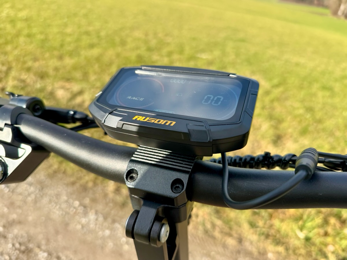 Die Bedienung des AUSOM L1 ist modern gelöst. Das große 4,5″ LCD-Display zeigt dir Geschwindigkeit, Fahrmodus, Akkustand und weitere Infos klar lesbar an. Die Tasten am Lenker fühlen sich wertig an, der Daumengas-Hebel ist gut dosierbar.