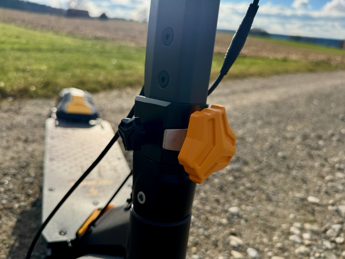 Die Spaltmaße, Schweißnähte und Verschraubungen wirken hochwertig. Auch die Klappmechanik macht einen vertrauenerweckenden Eindruck, was bei schweren Scootern extrem wichtig ist. Nichts klappert, nichts wirkt billig.