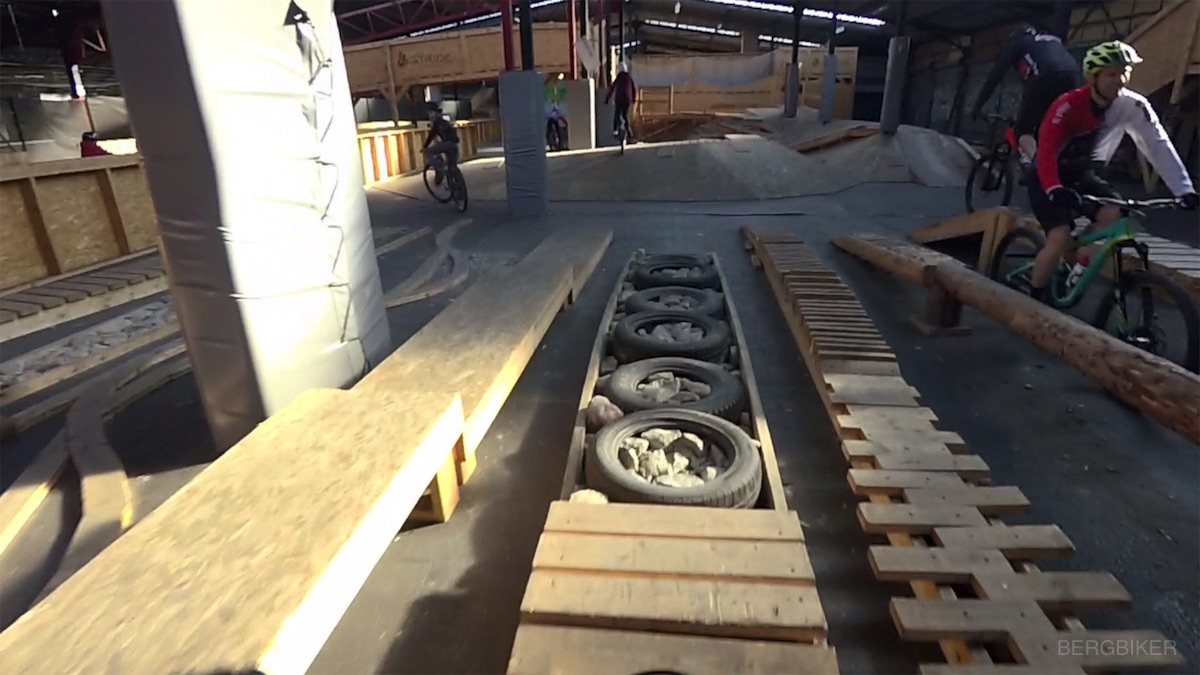 Mountainbike Training im Indoor Bikepark in Eropas größter Bikehalle in Straßburg.